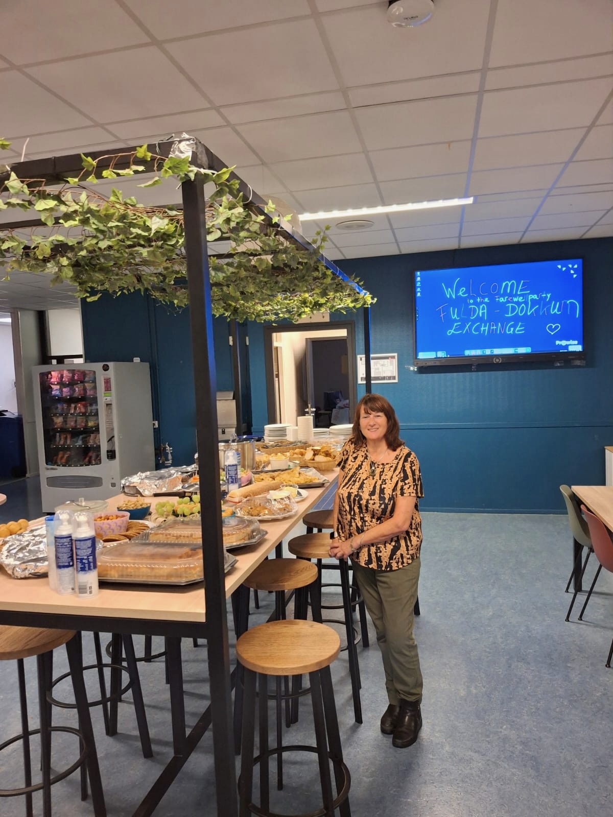 Woensdag was de 'sportdag'. Op de fiets naar Kollumeroord waar we ook een nachtje verbleven. Op de step en in kano's hebben we het gebied verkend. Donderdag bleek achteraf ook een sportieve dag. Op de fiets via Zoutkamp naar Lauwersoog waar de leerlingen getrakteerd werden op kibbeling en/of patat. Tevens konden ze hier de Waddenzee zien. Een aantal leerlingen uit Fulda had nog nooit een zee gezien. Helaas was de wind die dag stormachtig en we hadden de hele reis van Lauwersoog naar Dokkum wind tegen. Dit was voor vele (Duitse én Nederlandse) leerlingen een beproeving. Hoe trots kun je dan op jezelf zijn dat je het hebt gehaald! We hebben de leerlingen een groot compliment gegeven. 's Avonds stond de 'Farewellparty' op het programma. Ouders en leerlingen hadden hun best gedaan om heerlijk eten te bakken en te maken. Wolter Kleine van het vriendschapscomité Crediton-Dokkum-Fulda was ook aanwezig. Ouders en leerlingen konden na het eten vertellen over hun ervaringen. Prachtig om te horen hoe iedereen deze week ervaart en hoe er vriendschappen zijn ontstaan. Vrijdagochtend vroeg is de groep weer vertrokken na een fantastische week!!
